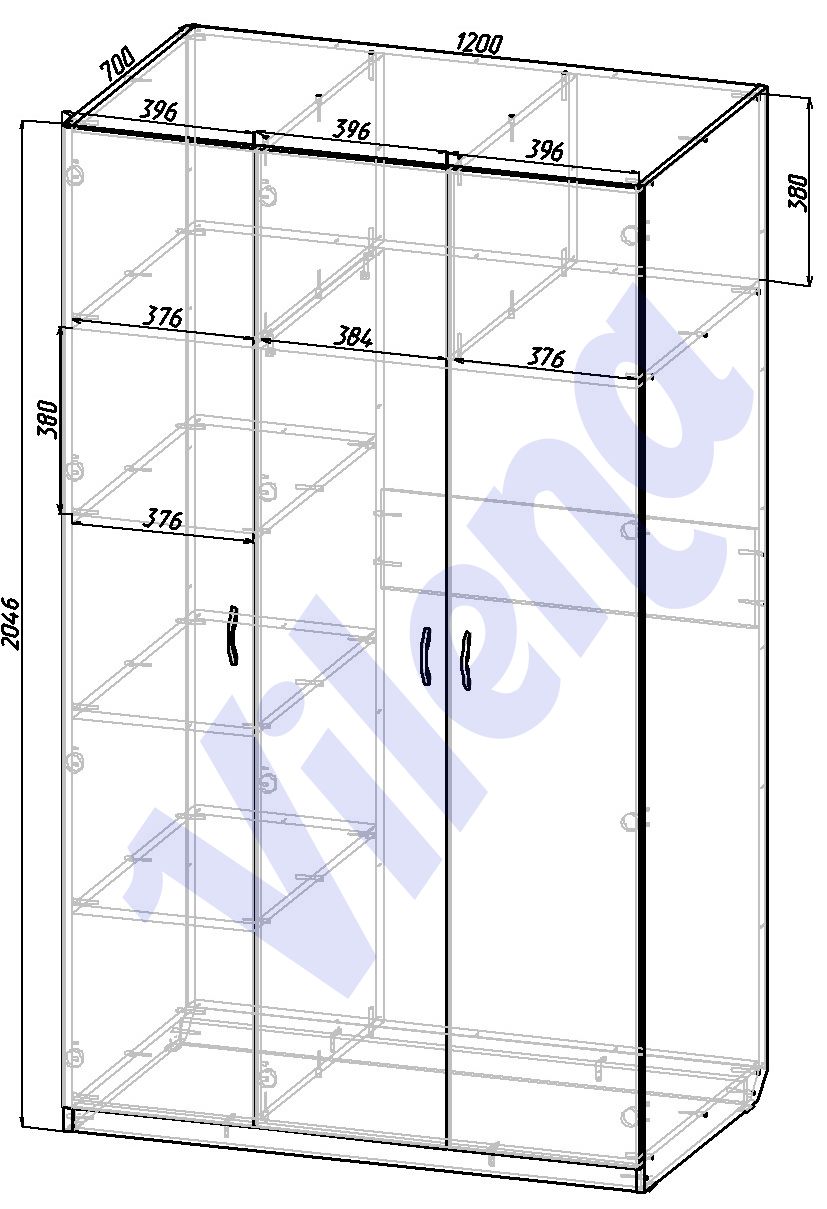 Материал ЛДСП 16 мм, ЛХДФ 4 мм (задняя стенка), кромка ПВХ 0.4 мм.
